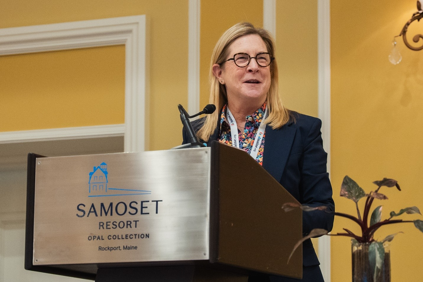 Sen. Anne Carney accepts the Maine Chapter of the American Academy of Pediatrics 2025 Legislator of the Year award.