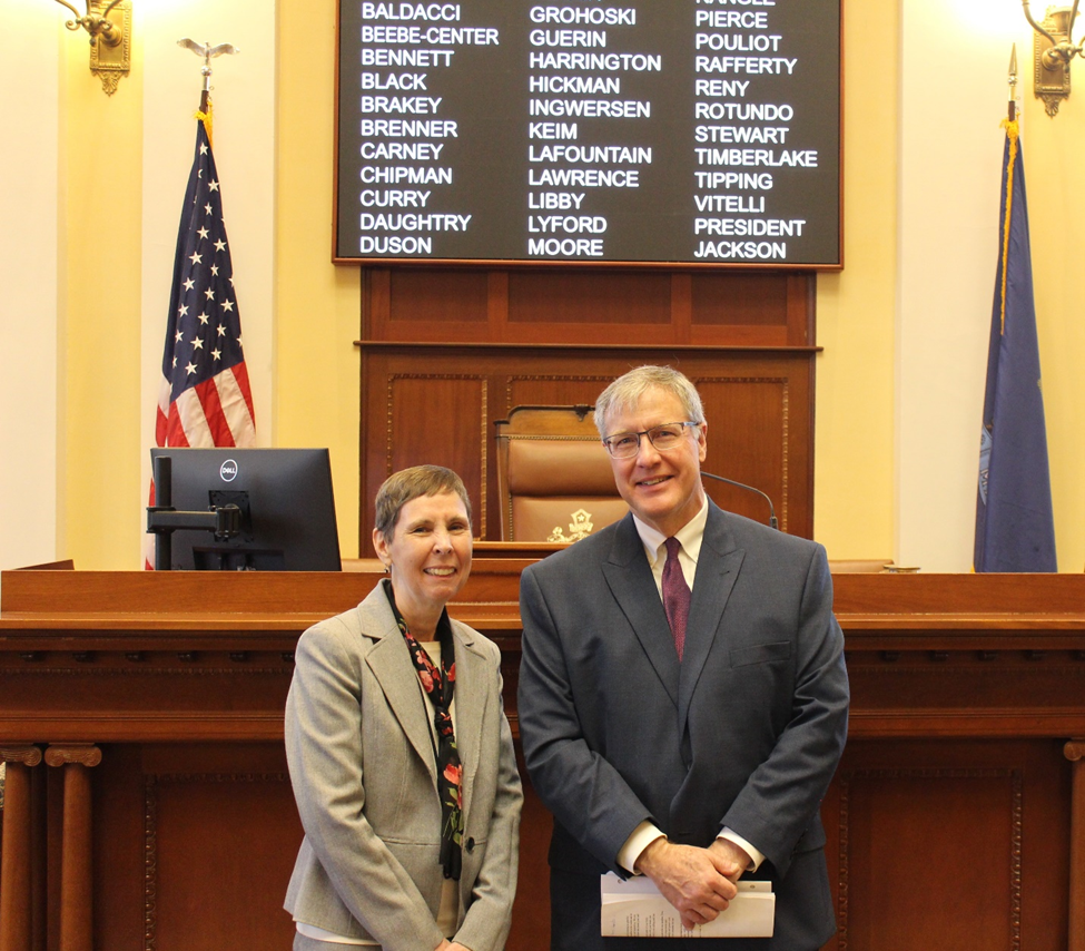 Sen. Bailey welcomes Rev. Scott Cousineau of First Parish Congregational Church to the Maine Senate