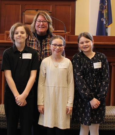 AUGUSTA — On Tuesday, January 28, Senate Majority Leader Teresa S. Pierce, D-Falmouth, welcomed three Falmouth Public School students to the Maine Senate. Everett Kelley, Phoebe Bureau, and Allie Pugh served as Honorary Pages while the Senate was in session.