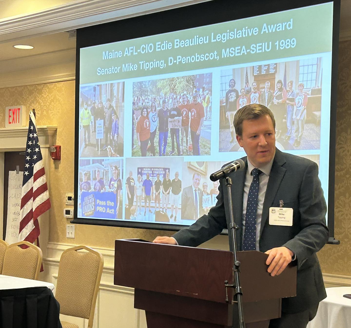 AUGUSTA — Last night, Sen. Mike Tipping, D-Orono, received the 2025 Edie Beaulieu Legislative Award from the Maine AFL-CIO. The award is named for Edie Beaulieu, a former Democratic lawmaker, who fought tirelessly for labor, education and public safety issues. She was the first woman to chair the Labor Committee, which Sen. Tipping currently chairs.