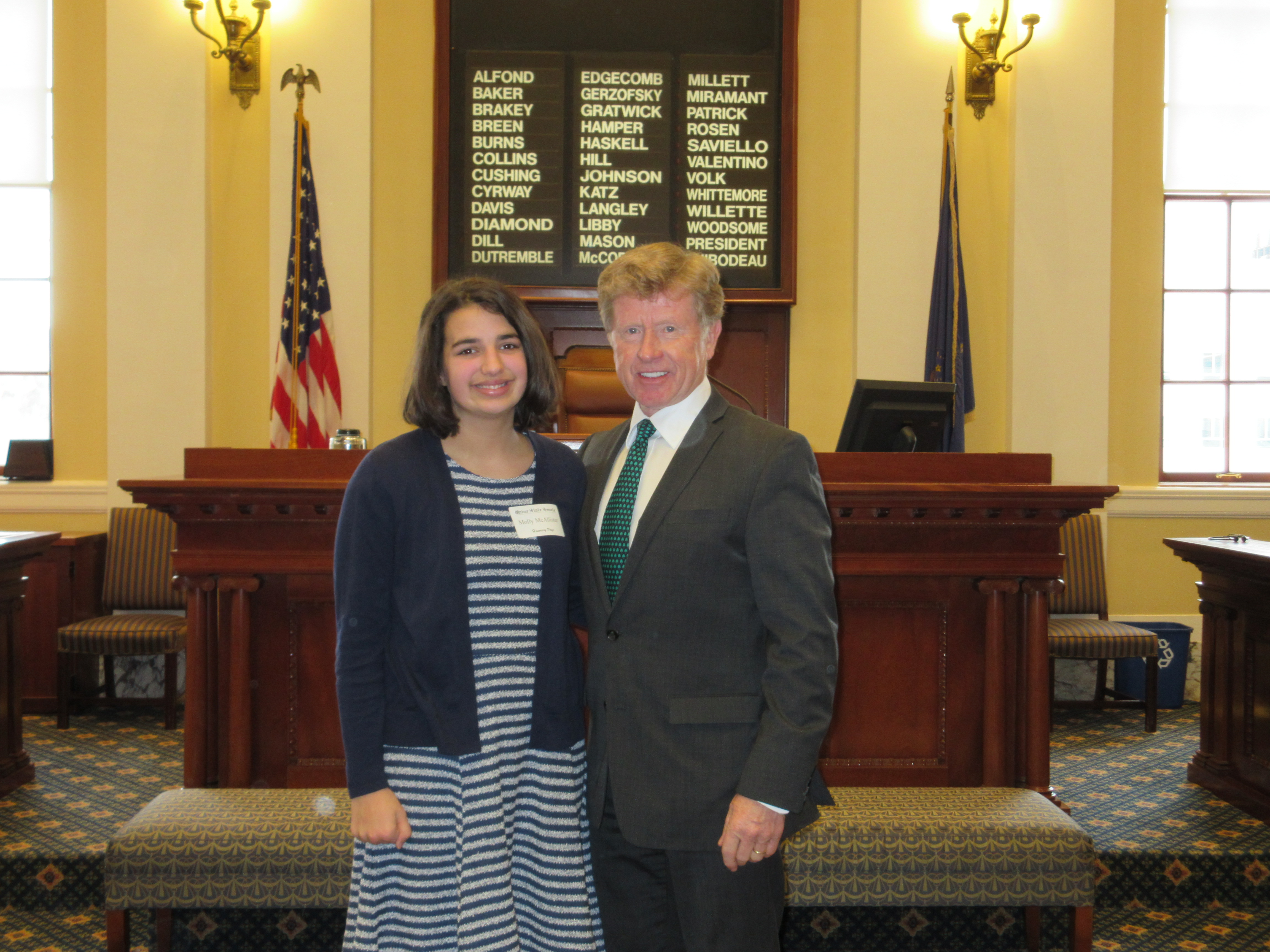 AUGUSTA – Molly McAllister of Windham recently served as an Honorary Page in the Maine Senate for the day as a guest of Senator Bill Diamond. Senator Diamond invited Molly to the State House for earning Student of the Month at Windham Middle School.